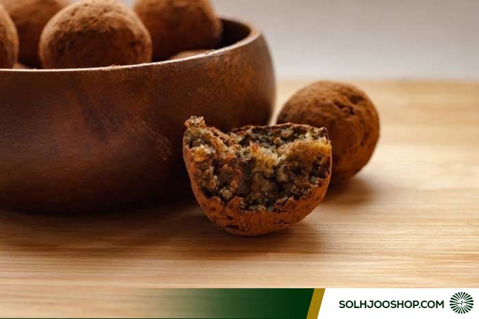 ۶. انتخاب نوع خرما: بهترین گزینه خرمای مضافتی یا خرماهای محلی نرم است. اگر از خرمای خشک (مثل پیارم یا زاهدی) استفاده میکنید، حتماً باید آنها را کمی با حرارت ملایم و مقدار خیلی کمی کره یا روغن حیوانی تفت دهید تا نرم شوند، وگرنه شکل دادن به آنها سخت میشود.